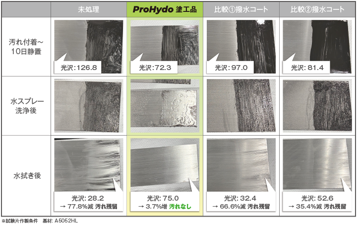 エンジンオイル(輸送機器の汚れを模擬したもの)の汚れの落ちやすさ比較